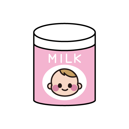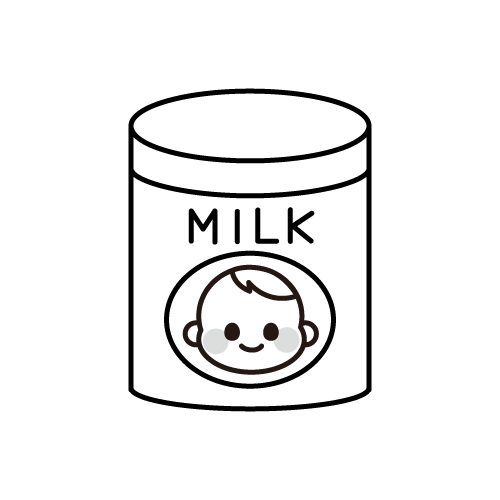 粉ミルクのイラストです。ミルク入りの哺乳瓶と粉ミルク缶の2種類です。