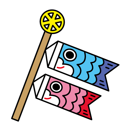 こどもの日(端午の節句)に使える、かわいいこいのぼりのイラストです。
