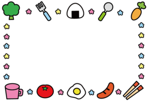 かわいい食べ物とお花のフレームイラスト